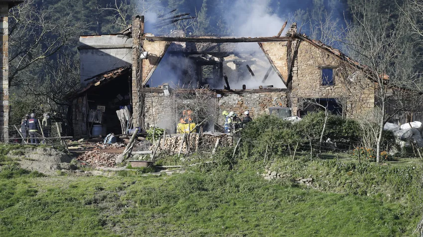 Los dos primeros cadáveres han sido recuperados de entre los escombros antes de las nueve de la mañana, una vez que los bomberos han podido controlar las llamas y acceder al interior del caserío.